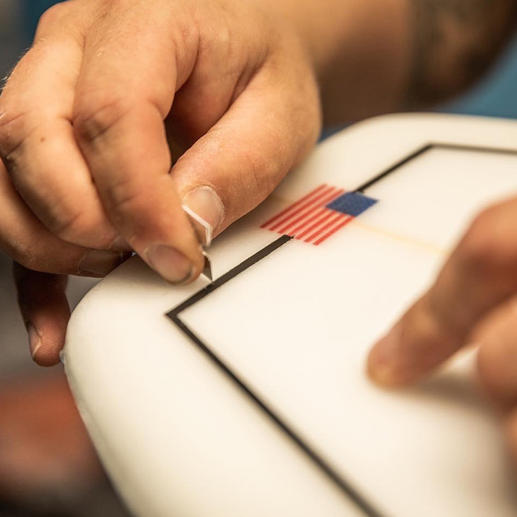 - Once the board is designed and shaped, it comes down to glassing schedule and aesthetics. We will figure out what weight and type of glass you want, along with the colors, pinlines, fin setups, sand or polish finish, gloss, etc.