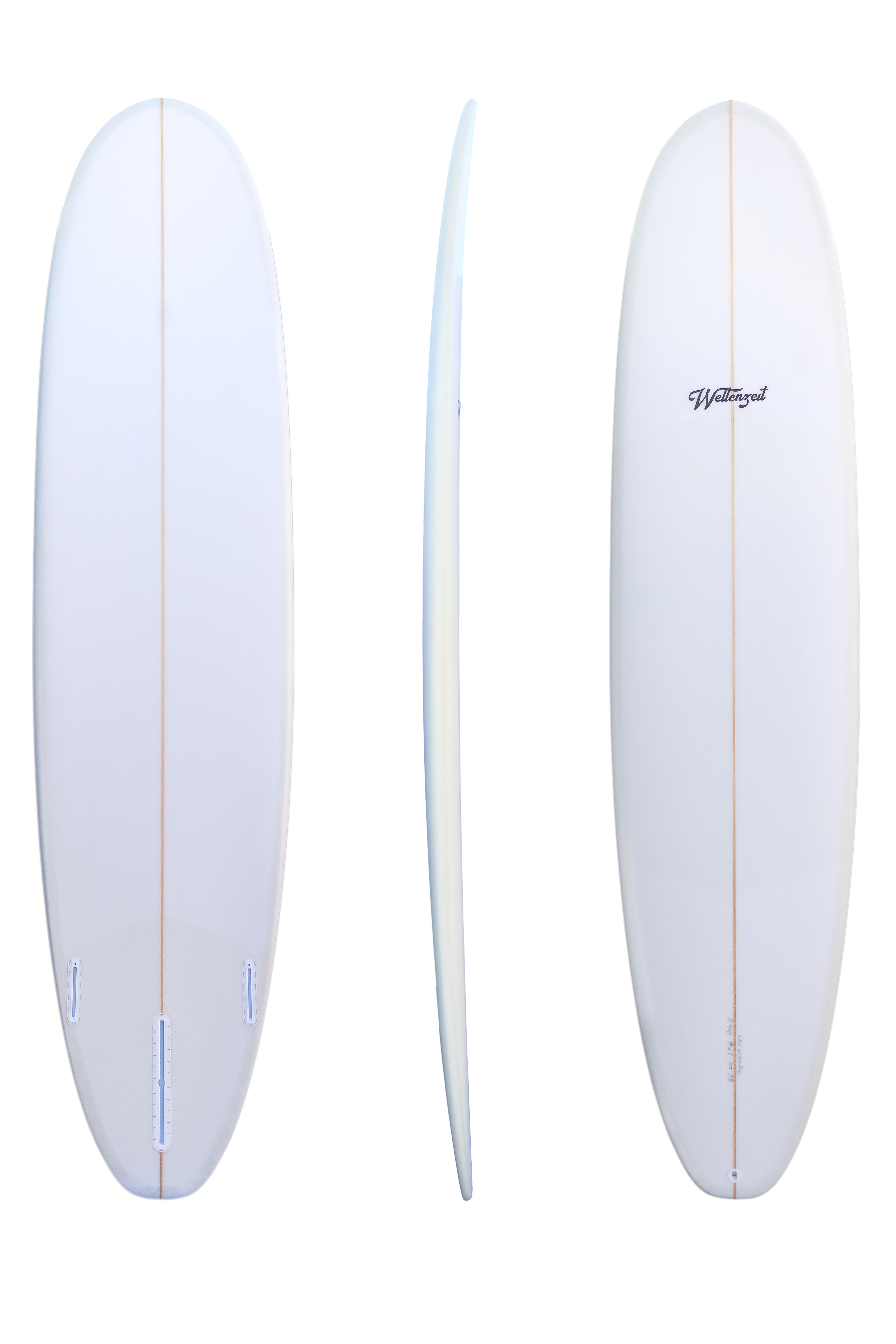 The bogus II is a modified version of the original Bogus. This board is a user friendly, maneuverable and fast mini-mal. It is a little wider than the Bogus, and the rails are a little fuller, for increased stability. The tail curve is a continuous curve from the wide point, broadening the sweet spot, allowing the surfer to choose the responsiveness of the turn by shifting position on the board. The single to slight double concave makes this board fast and lively, and the relaxed rocker in the nose provides paddle speed, while the slightly aggressive rocker in the tail allows for tighter turns over the fins.