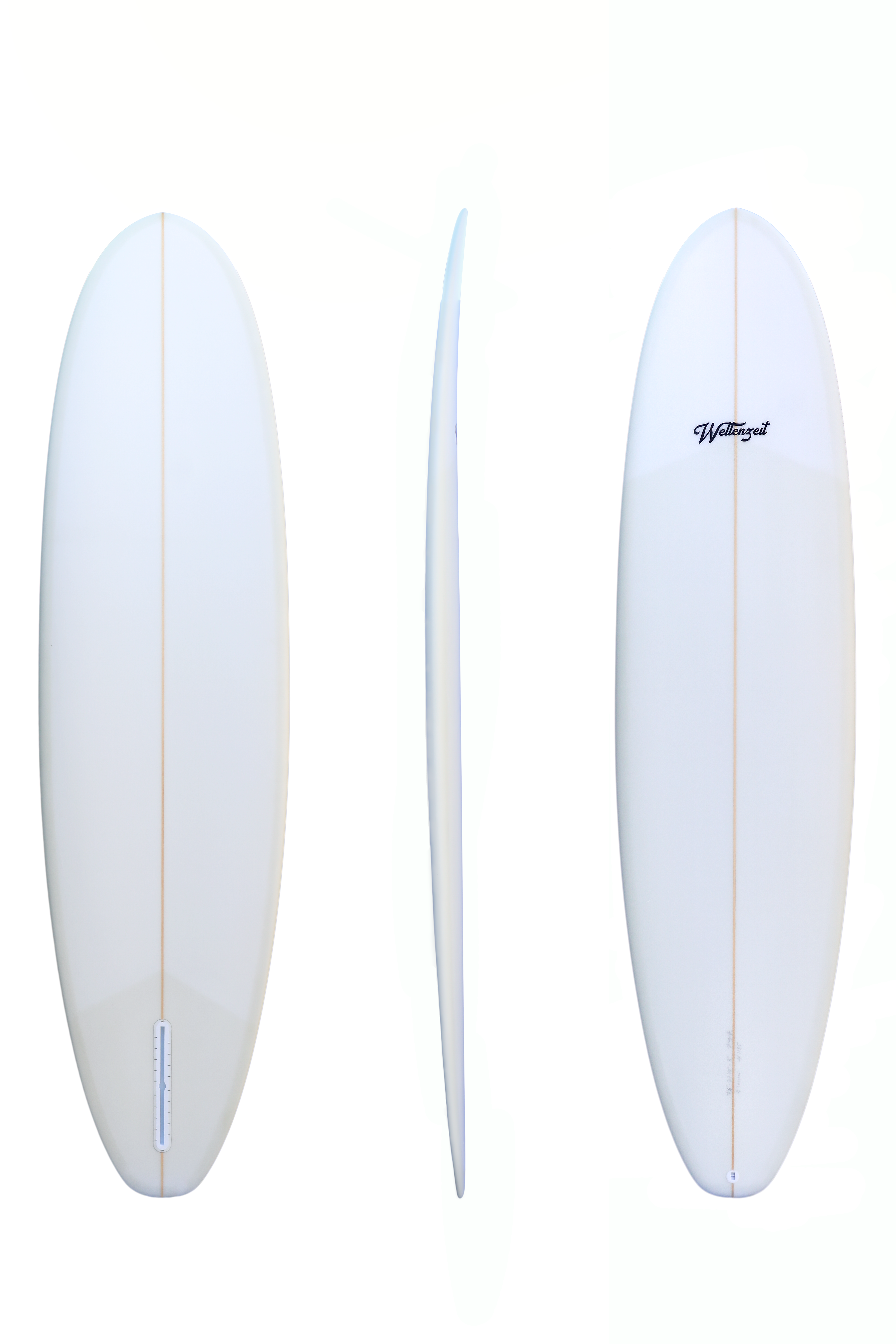 The Telstar. This is the board I designed for myself. Through the R+D process, I have refined this board to perfection. I shaped and tested many versions of this board, until it led me to this. This board is very buoyant, at 3″ thick, but has super pinched rails. The deck an S-deck, (scooped in the nose, and tapered in the tail), making it easy to swing around, and flexy in the tail. With a lower wide point, this board’s rotation point is just behind center. The tapered, rounded squash tail allows turning from further up on the board, preventing loss of speed through turns. The bottom of the board has a VERY slight concave, and begins to hull 3 inches from the rail, making this board fast, but extremely easy in rail to rail transition. It has the benefit of a hull, but without the plow and ultra looseness at high speeds. This board lifts with speed to a maximum plane of an 18 inch wide board.